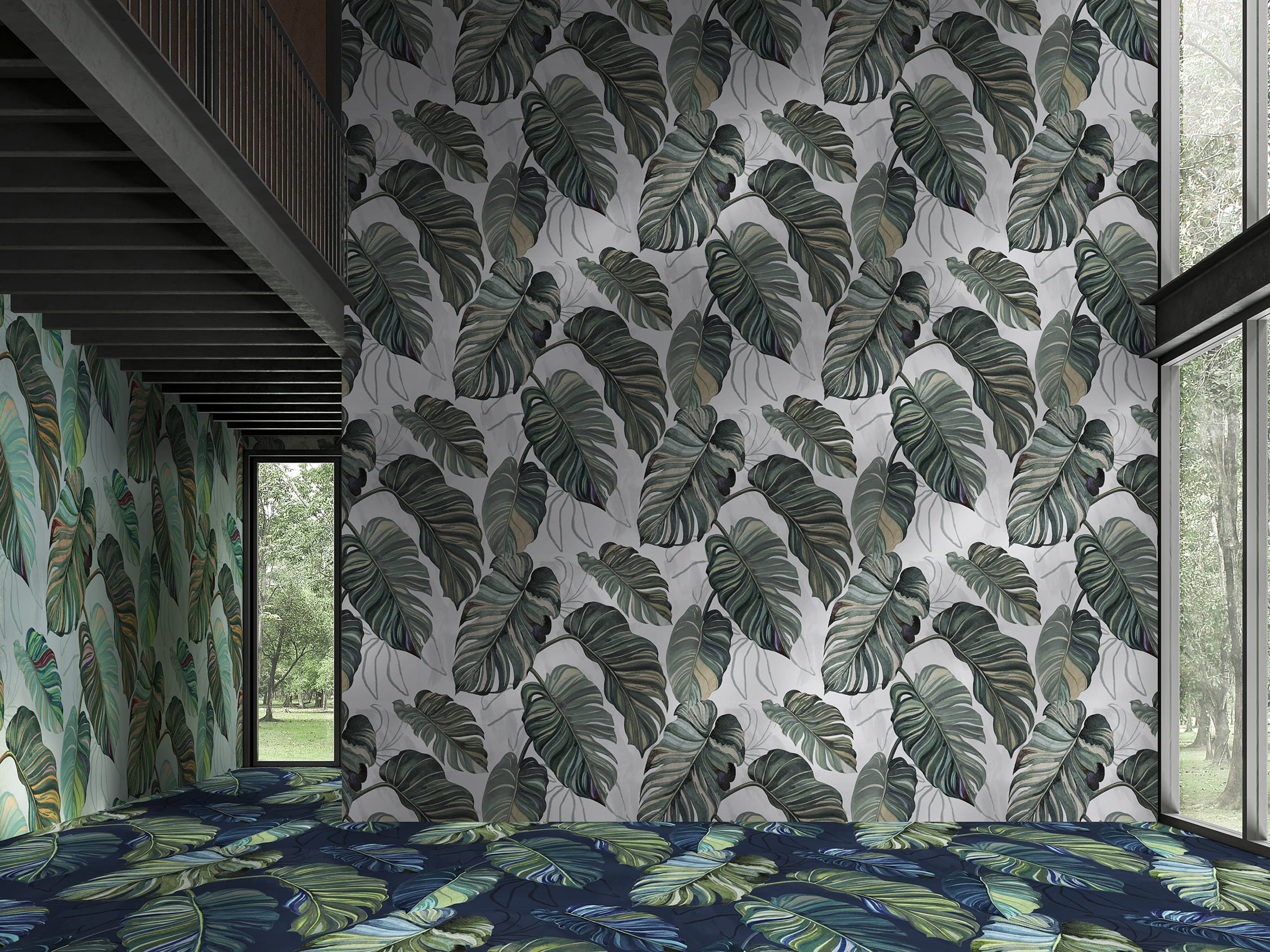 Nous commençons par une invasion de feuilles de Monstera Deliciosa, inspirée du Brésil. C'est la référence CARIOCA de la WANDER COLLECTION.