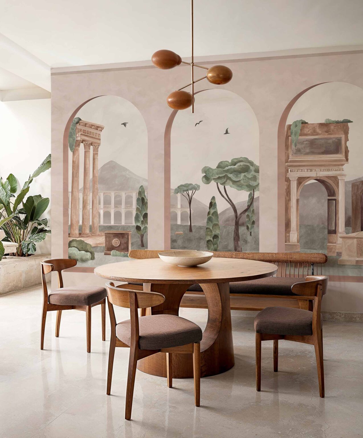 Coordonné’s Forum Autumn is a Landscapes design in Pink/Lilac from the Pompei collection. The view between arches of the vestiges of a busy and chaotic public life.